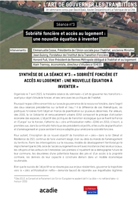 Après la forêt, l'eau, et les politiques foncières d'habitat, la quatrième séance du séminaire « l'Art de gouverner les transitions » organisée le 26 mai 2023 prenait pour objet d'étude la transition énergétique, et plus spécifiquement les conditions de sa territorialisation.