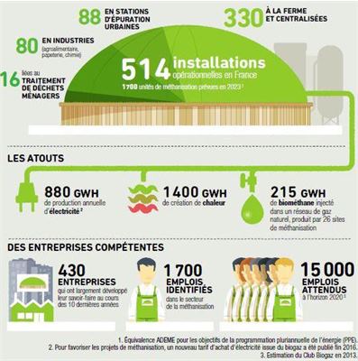 Pour l'ADEME, la méthanisation est une filière prometteuse aux bénéfices multiples, tant en termes environnementaux (traitement des déchets, production d'énergie renouvelable, diminution des émissions de gaz à effet de serre…) que de diversification des activités agricoles, notamment pour les éleveurs. Elle doit prendre une part importante dans l'atteinte des objectifs fixés par la loi de transition énergétique pour la croissance verte.