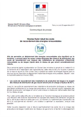 Électricité renouvelable ; Biogaz ; Éolien ; Énergie solaire ; Solaire photovoltaïque ; Coût de connexion ; Raccordement réseau ; Politique énergétique